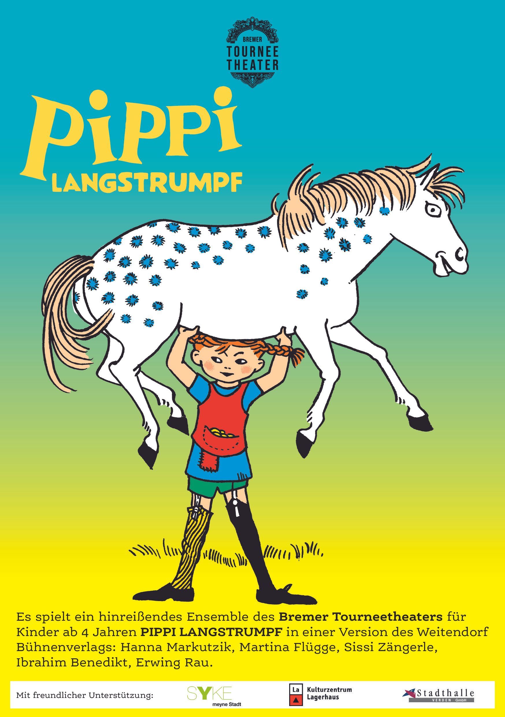 In seiner 7.Kooperation mit der Stadt Syke spielt ein Ensemble des Bremer Tourneetheaters für Kinder ab 4 Jahren PIPPI LANGSTRUMPF in einer Version des Weitendorf Bühnenverlags.